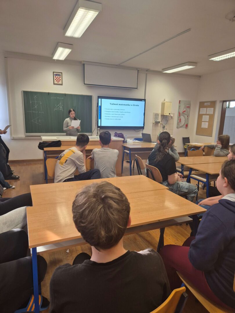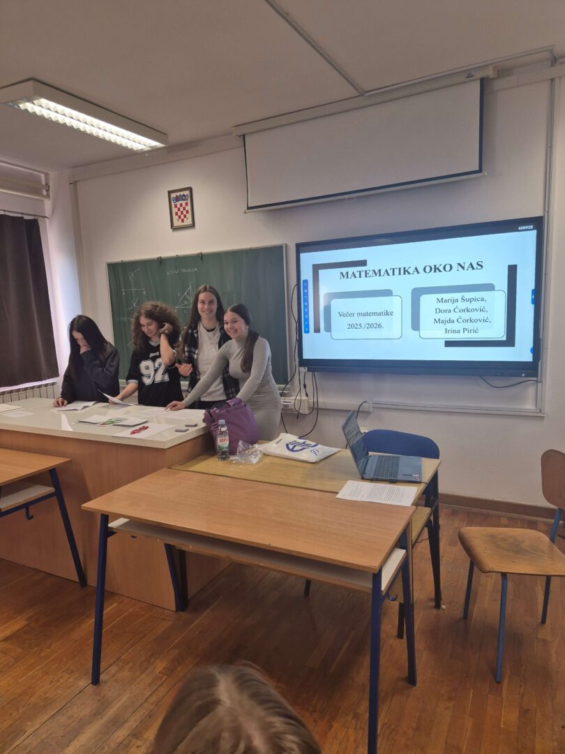 Tijekom siječnja i veljače učenici su istraživali ulogu i važnost matematike u našim životima, ali i stavove prema njoj kao nastavnom predmetu. Istražene sadržaje su predstavile učenice osmog razreda, Dora Ćorković, Majda Ćorković, Irina Pirić i Marija Šupica, na uvodnom dijelu Večeri matematike organiziranoj za učenike predmetne nastave.
