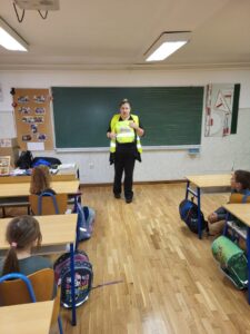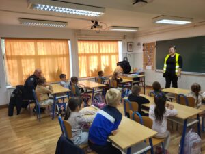 U sklopu projekta s HAK-om sigurno u prometu djelatnica HAK-a u pratnji pripadnika MUP-a (PP Okučani) održala je predavanje sukladno temi projekta. Predavačica je vrlo angažirano i sugestivno (na razini kronološke dobi učenika 1. razreda) prezentirala važnost poštivanja prometnih pravila te osobnog opreza u prometu. Posebnu pažnju je posvetila problemu električnih romobila i odgovornosti roditelja kao uzora. Na kraju su učenicima podijeljeni prigodni pokloni, a za uspomenu su ostale fotografije koje arhiviraju uistinu vrijedno druženje malih i velikih ljudi.