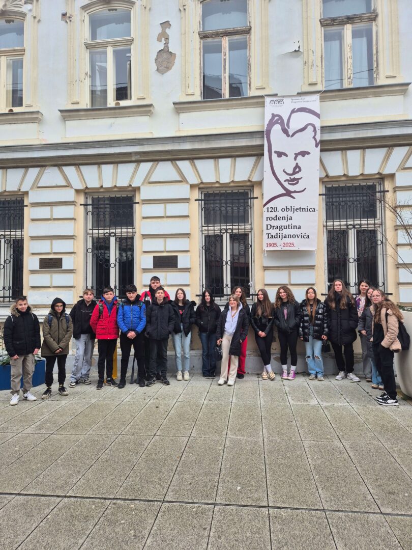 Prva postaja bio je Spomen-dom Dragutina Tadijanovića, gdje su ih dočekali iznimno ljubazni i stručni kustosi. Učenici su saznali mnogo o životu i radu velikog hrvatskog pjesnika, njegovoj supruzi, prijateljima, radnoj etici, brojnim nagradama te bogatoj korespondenciji koju je ostavio iza sebe.