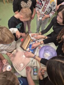 Prije same predstave učenice osmog razreda naše škole: Tina Dobriković, Milica Vukasović i Patricia Jeftić održale su s hrabrijim vrtićancima radionicu izrade vještičjeg napitka koji je pucketao, pjenio i mijenjao boju uz predivan miris lavande.